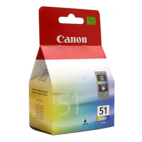 →Canon CL-51 Color 0618B001 - цветной картридж, созданный по технологии FINE, c жёлтыми, синими и малиновыми чернилами. Заявленный производителем ресурс печати 545 страниц. Совместимость с устройствами: Canon iP2200, MP150, MP170, MP450, MP160, MP180, MP460, MX310, MX300, iP6220D, iP6210D PIXMA. Тип печати – струйная. Тип картриджа – чернильница. Купить товар можно на сайте. Доставка товара реализуется Новой почтой, в города, где есть представительства компании.