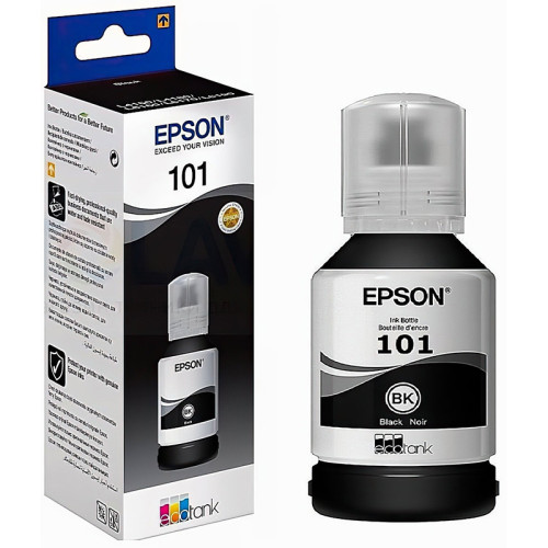 Оригінальний контейнер з чорнилами EPSON 101Bk (C13T03V14A) для принтерів L-4150/ 4160/ 4167/ 6160/ 6170/ 6190/ 14150. Ресурс друку - 127мл, 7500 стор. Колір чорний. Придбати товар EPSON 101Bk (C13T03V14A) можна у Києві, замовивши на нашому сайті. Продаж та доставка по Україні здійснюється у міста, в яких є відділення транспортної компанії «Нова пошта».