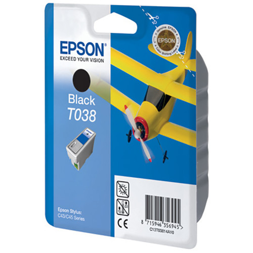 →Оригинальный картридж Epson T0381 (C13T03814A10), для принтеров Stylus C43/ 45. Ресурс печати - 220 страниц А4 при 5% заполнении. Цвет - черный. Купить товар Epson T0381 (C13T03814A10) можно в Киеве заказав на нашем сайте. Продажа и доставка по Украине осуществляется в города, в которых есть отделения транспортной компании «Новая почта».
