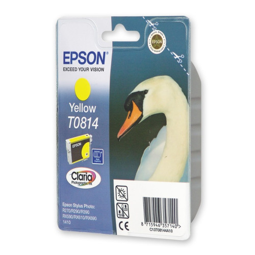 Оригінальний картридж Epson T0814 (C13T11144A10), для принтерів Stylus Photo 1410, R270/290/295/390, RX590/610/615/690, T50/57, 08/09 при 5% наповненні. Колір – Yellow. Придбати товар Epson T0814 (C13T11144A10) можна у Києві замовивши на нашому сайті. Продаж та доставка по Україні здійснюється до міст, в яких є відділення транспортної компанії «Нова пошта».