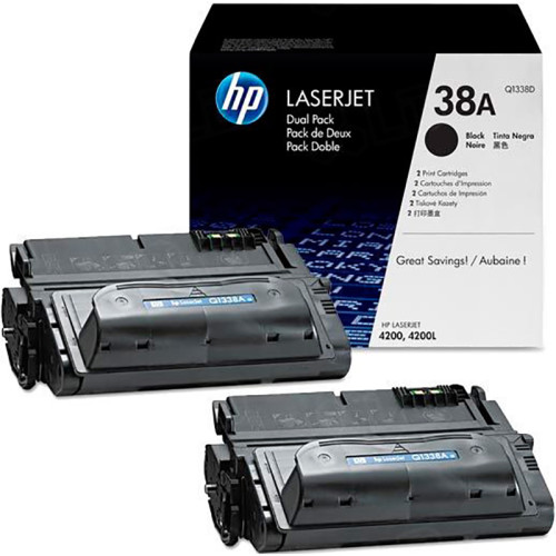 Оригинальный картридж HP 38A (Q1338D), двойная упаковка, для принтеров LaserJet 4200. Ресурс печати - 2x12000 страниц А4 при 5% заполнении. Цвет – черный. Купить товар HP 38A (Q1338D) можно в Киеве заказав на нашем сайте. Продажа и доставка по Украине осуществляется в города, в которых есть отделения транспортной компании «Новая почта».